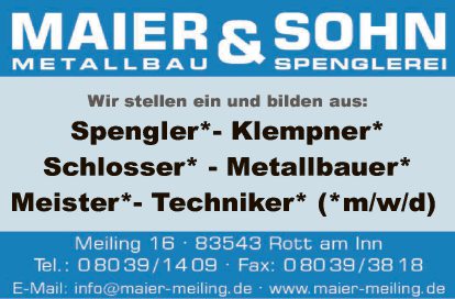 Div. Stellenangebote (m/w/d) ab sofort bei Metallbau/Spenglerei Maier & Sohn