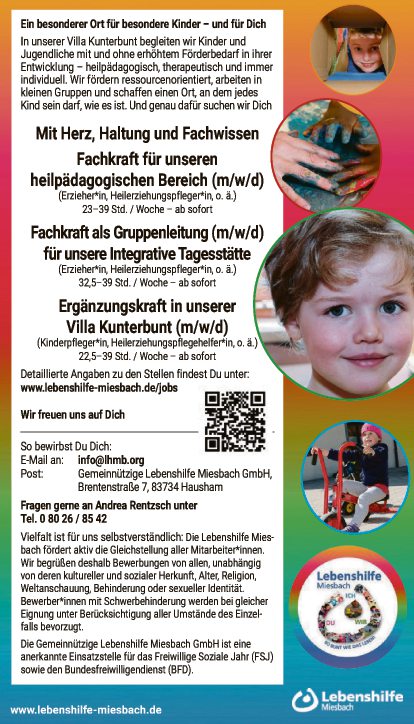 Diverse Stellenangebote bei der Gemeinnützigen Lebenshilfe Miesbach ab sofort