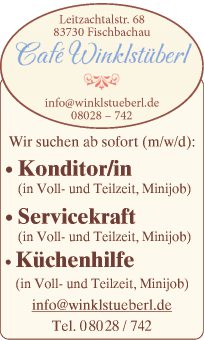 Diverse Stellenangebote beim Cafe Winklstüberl ab sofort