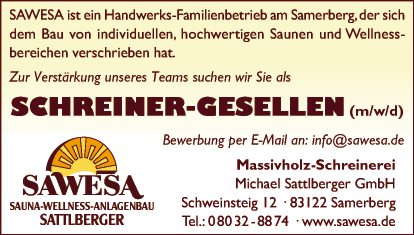 Schreiner-Gesellen (m/w/d) ab sofort bei Schreinerei Sattlberger