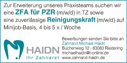 ZFA für PZR in Teilzeit (m/w/d) & Reinigungskraft (m/w/d) auf Minijob-Basis ab sofort