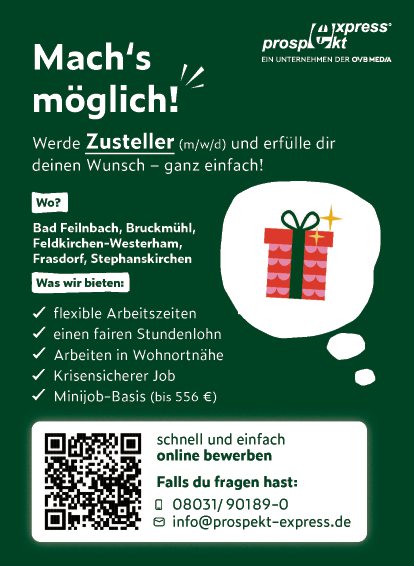 Zusteller (m/w/d) für Lkr. Rosenheim ab sofort